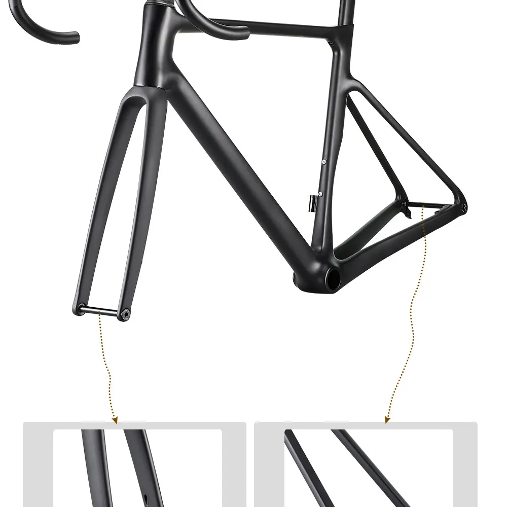 La commande contient : cadre, fourche, tige de selle, support inférieur, pince de selle, axe central, crochet arrière.